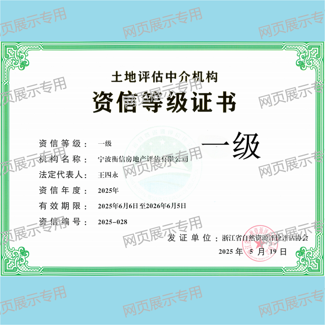 衡信评估是一家专业从事土地、房地产评估的综合性中介服务机构。 公司主要经营范围为:房地产价格评估、市场调查及信息咨询服务; 土地价格评估、市场调查及信息咨询服务;土地方案编制;代办用地报批手续;代办不动产登记手续。 注册地:宁波市鄞州区,注册资金250万元。多年来,主要从事国有(集体)土地房屋征收评估; 各类型房地产价格评估(收购核价、咨询评估、租金测算、涉外资产评估、交易纳税评估、司法评估、银行抵押评估等); 土地评估(协议出让,招拍挂出让,补交出让金,出租、划拨回购)等业务。